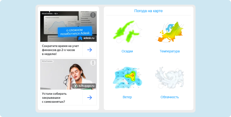 Тематическую рекламу пользователь может увидеть на сайте любой тематики, даже сервиса прогноза погоды