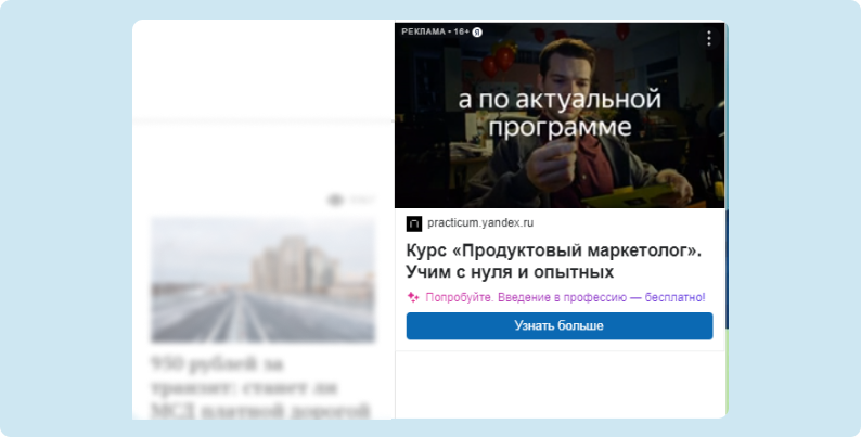 Графическое объявление может быть анимированным. В этом случае у рекламодателя есть возможность донести больше информации до пользователя